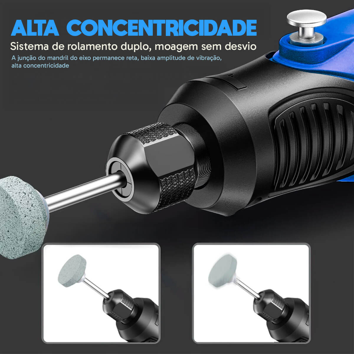 - Mandril Universal 2,35mm: Compatível com a maioria dos acessórios