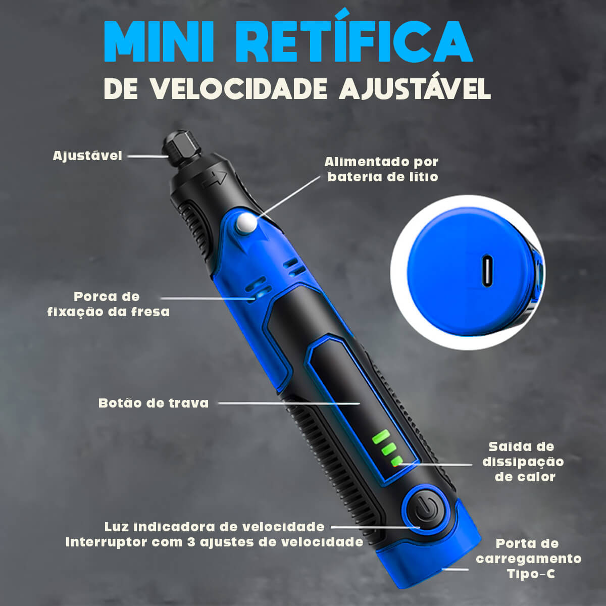 - Design Compacto e Ergonômico: Ideal para trabalhos de precisão em qualquer lugar