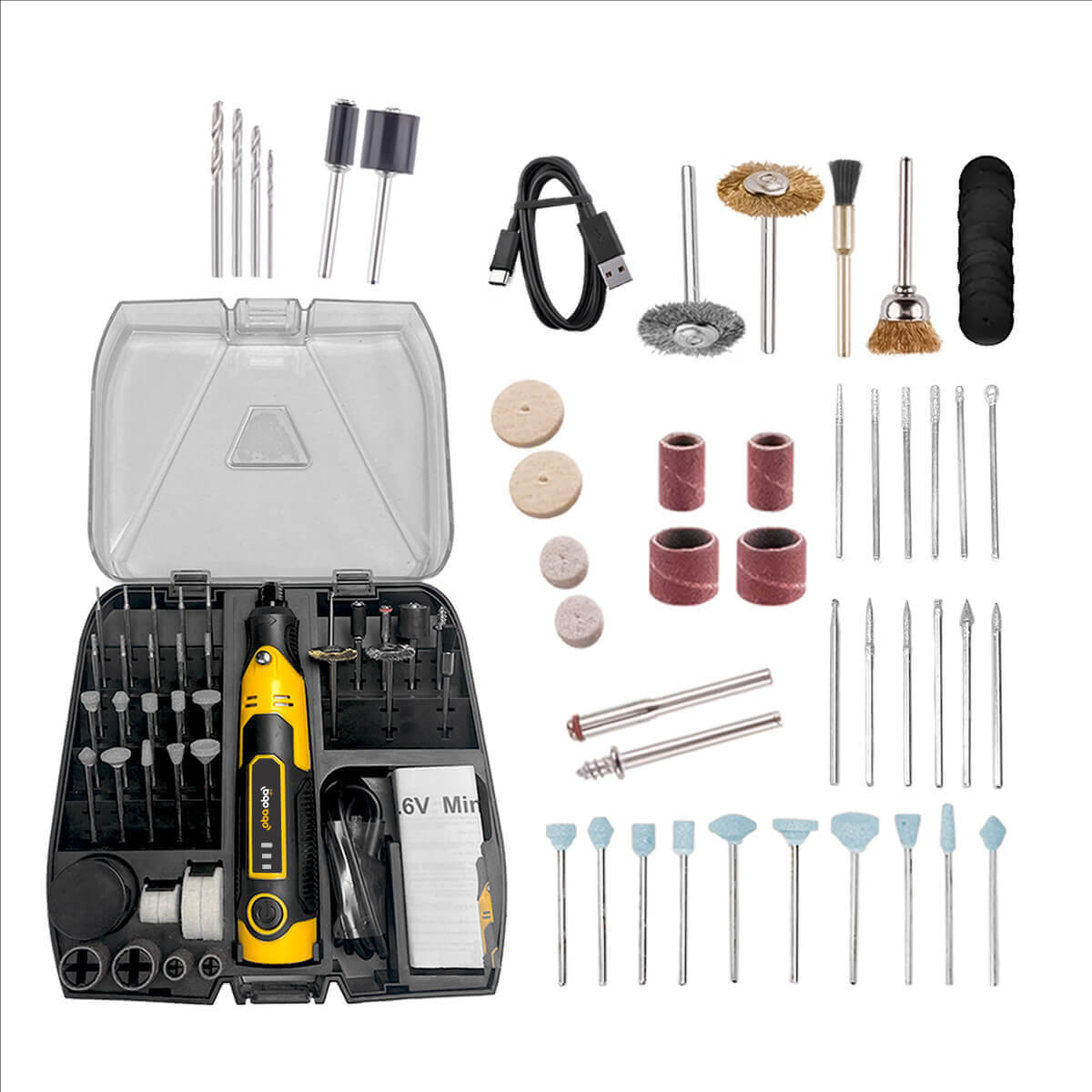 - Acessórios Inclusos (57 em 1): Abrange tarefas como corte, polimento, lixamento, gravação, limpeza e mais