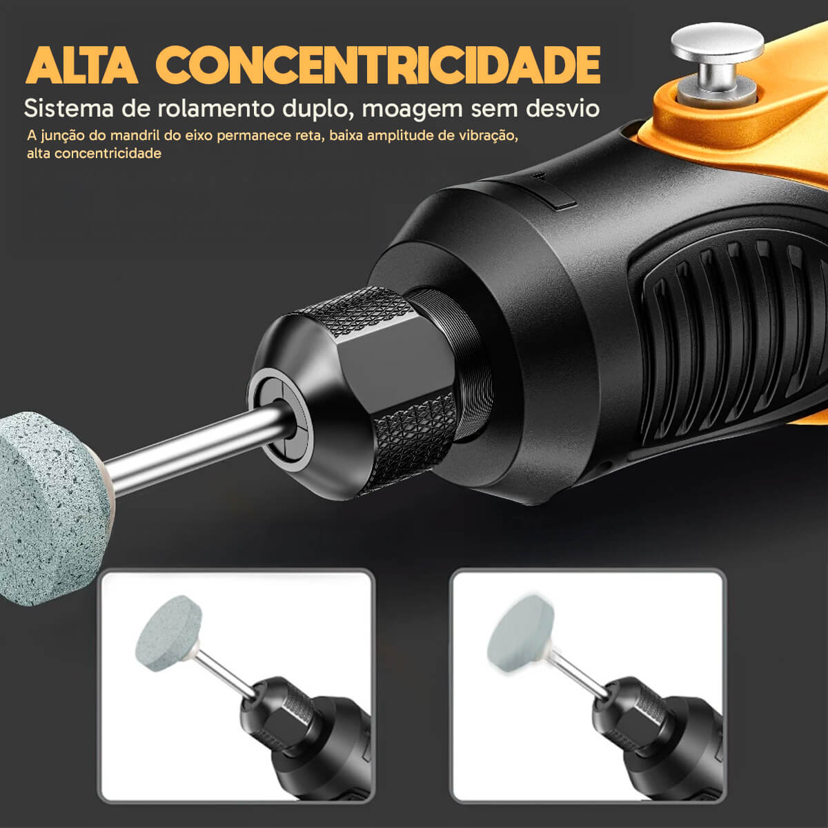 - Mandril Universal 2,35mm: Compatível com a maioria dos acessórios